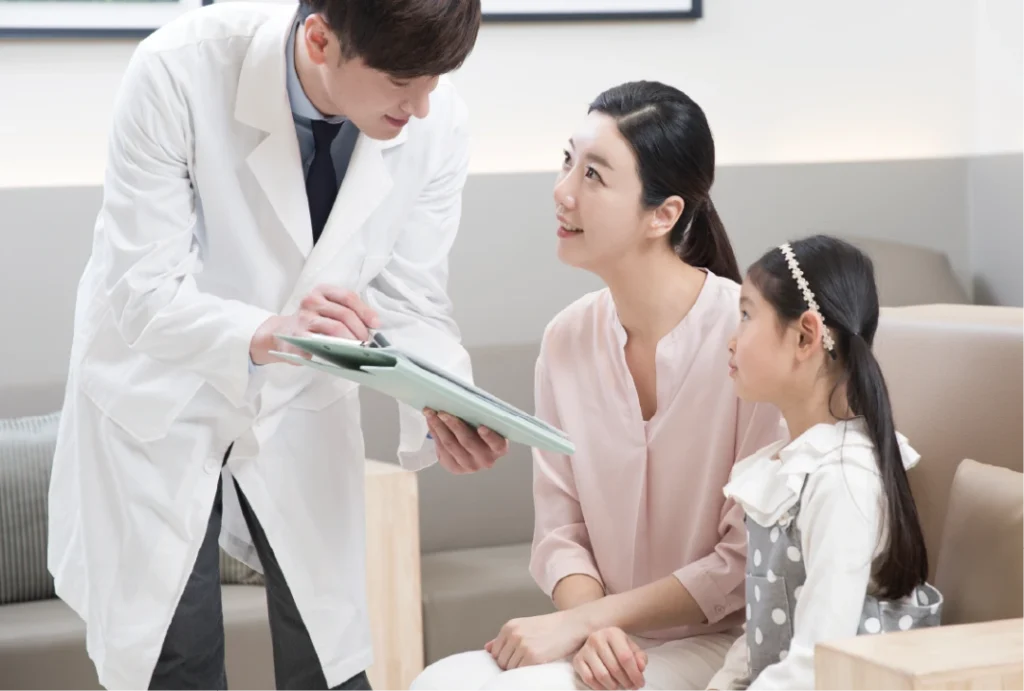 お子さまの成長状況や体成分について確認し、検査に必要な項目と費用をご案内します。