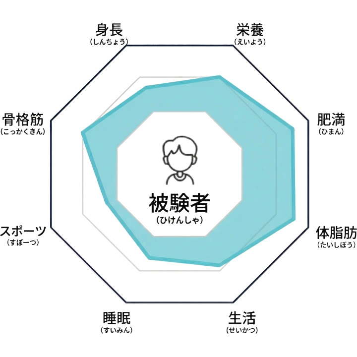 身長に加え栄養・睡眠・運動・肥満を総合分析し、家庭で実践できる改善案を提案。