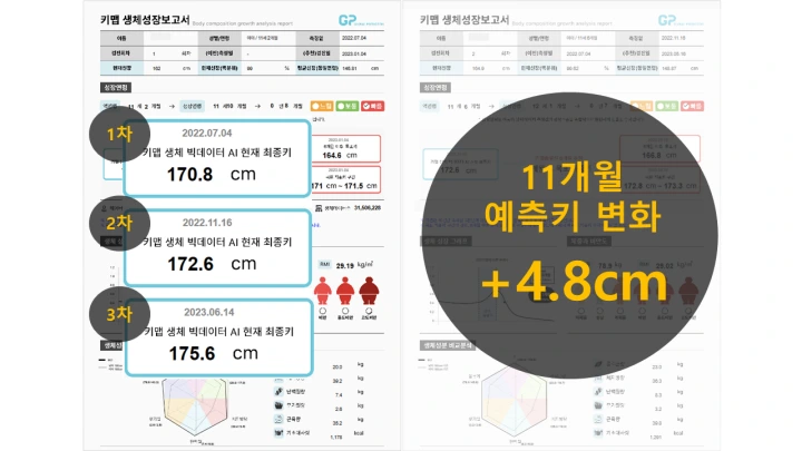 最終身長を予測し、180cmデータとの比較分析で最適プランを提案。