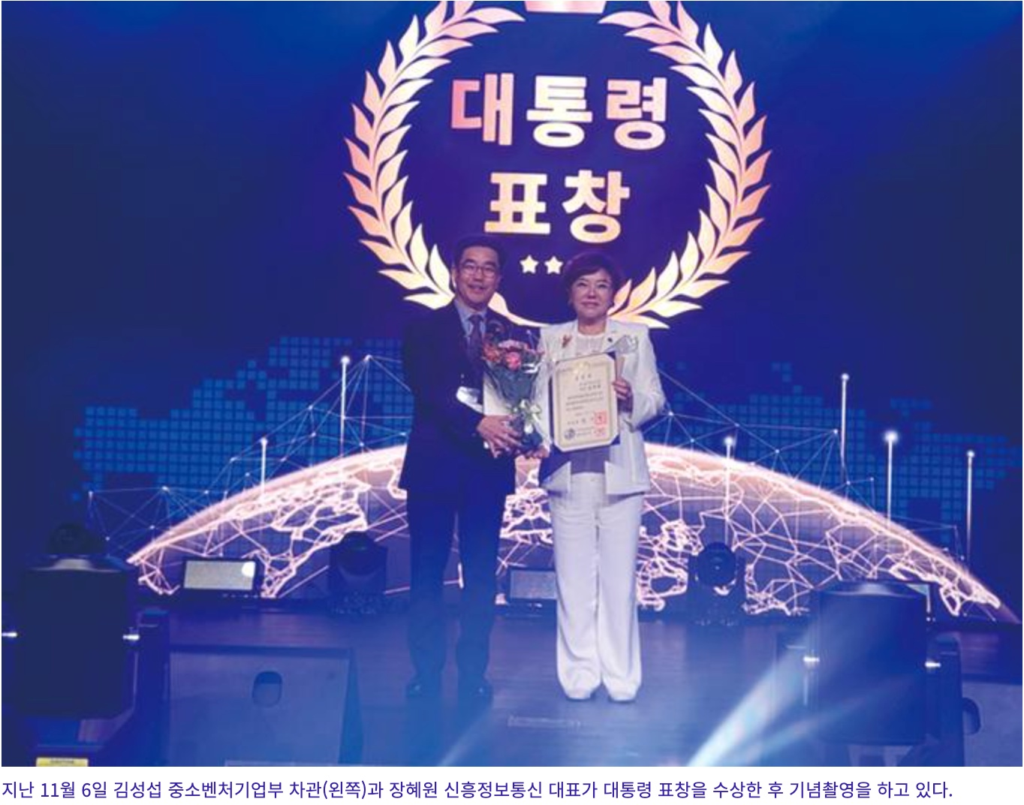 「2024 隠された経営大賞」で最優秀経営賞受賞者に選ばれた新興情報通信(代表取締役チャン・ヘウォン)は、有線通信網構築から高速インターネット配信、有線・無線統合設計・施工まで網羅する基礎通信網インフラ構築の専門企業です。